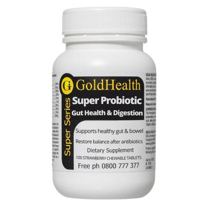 Gold Health Super Probiotic Gut Health and Digestion | World's Most Researched Probiotic Strain | 100 Chewable Tablets 1-3 daily