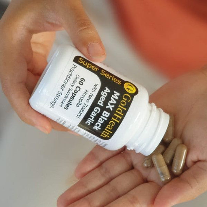 Gold Health Aged Black Garlic is a fermented and aged version of garlic, this process reduces the potent garlic smelling components, to leave a milder but more biologically active antioxidant-rich compound.