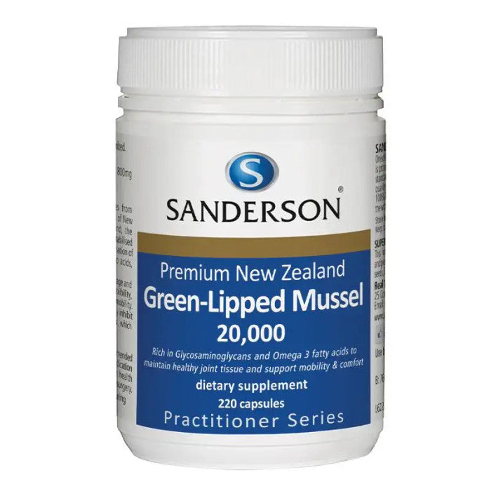 Sanderson Premium New Zealand Green-Lipped Mussel extract comes from sustainably harvested mussels grown in the pristine waters of New Zealand’s Marlborough Sounds. Unique to New Zealand, the green-lipped mussel provides a complete joint food; the stabilised powder extract in this product is a naturally balanced combination of Omega 3 essential fatty acids, Glycosaminoglycans, amino acids, chelated minerals and Chondroitin Sulphates 4 & 6.