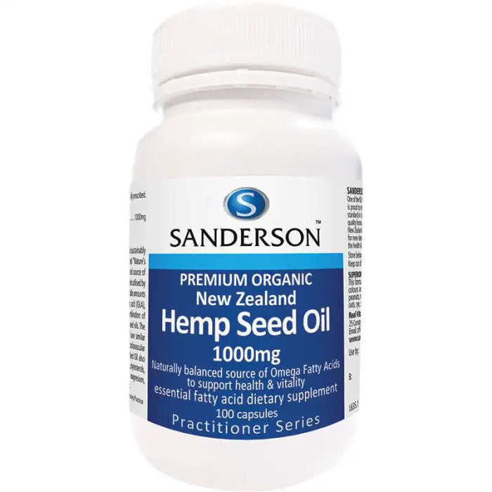 Sanderson’s Premium Organic New Zealand Hemp Seed Oil Certified Organic and sustainably grown and pressed in New Zealand. Dubbed “Nature’s most perfectly balanced oil” Hemp Seed Oil is a consistent, balanced source of Omega Fatty Acids 3 & 6 that can be easily absorbed and utilised by the body. Hemp Seed Oil also contains seasonally variable amounts of the polyunsaturated fatty acids Gamma-linolenic acid (GLA), Oleic acid (Omega 9) and Steridonic acid. This combination of essential fatty acids (EFAs) is unique among edible seed oils. The EFA profile of Hemp Seed Oil means that it may have similar attributes to other oils supporting skin health, cardiovascular health, joint mobility and hormone balance. Hemp Seed Oil also provides an array of other nutrients including Vitamin E, Carotene, phytosterols, phospholipids, and a range of minerals including magnesium, calcium, sulphur, potassium, phosphorus, iron and zinc.