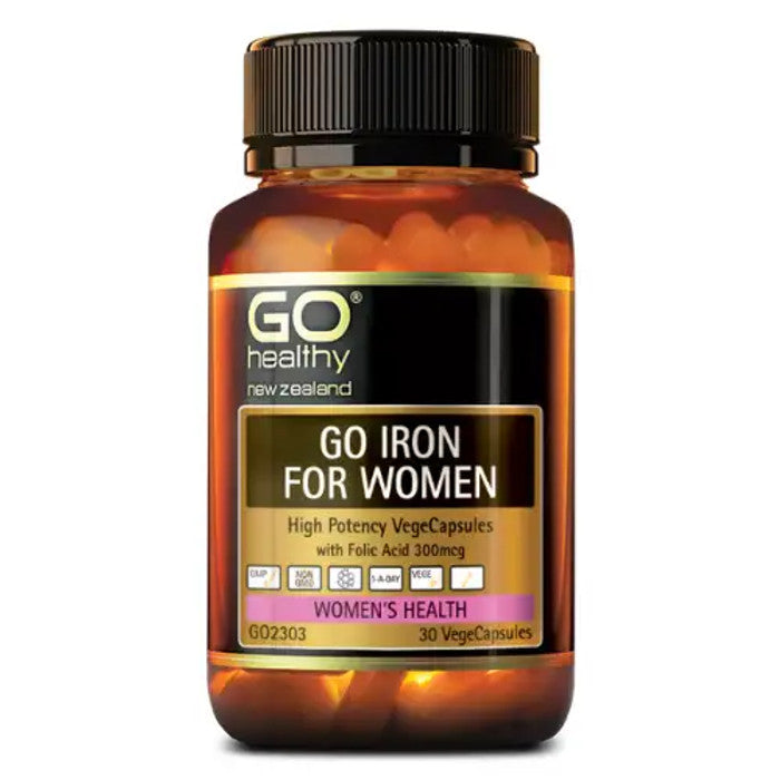 Go Healthy Iron For Women has supporting nutrients which aid with the uptake and absorption of Iron. Go Iron For Women is presented in an easy One-a-Day VegeCap dose. You should consider taking Go Iron For Women if you: are susceptible to colds and flu, low energy levels, dry, lifeless hair, thin brittle nails, pale skin, poor concentration and memory, vegetarian or vegan, heavy blood loss menstruation.