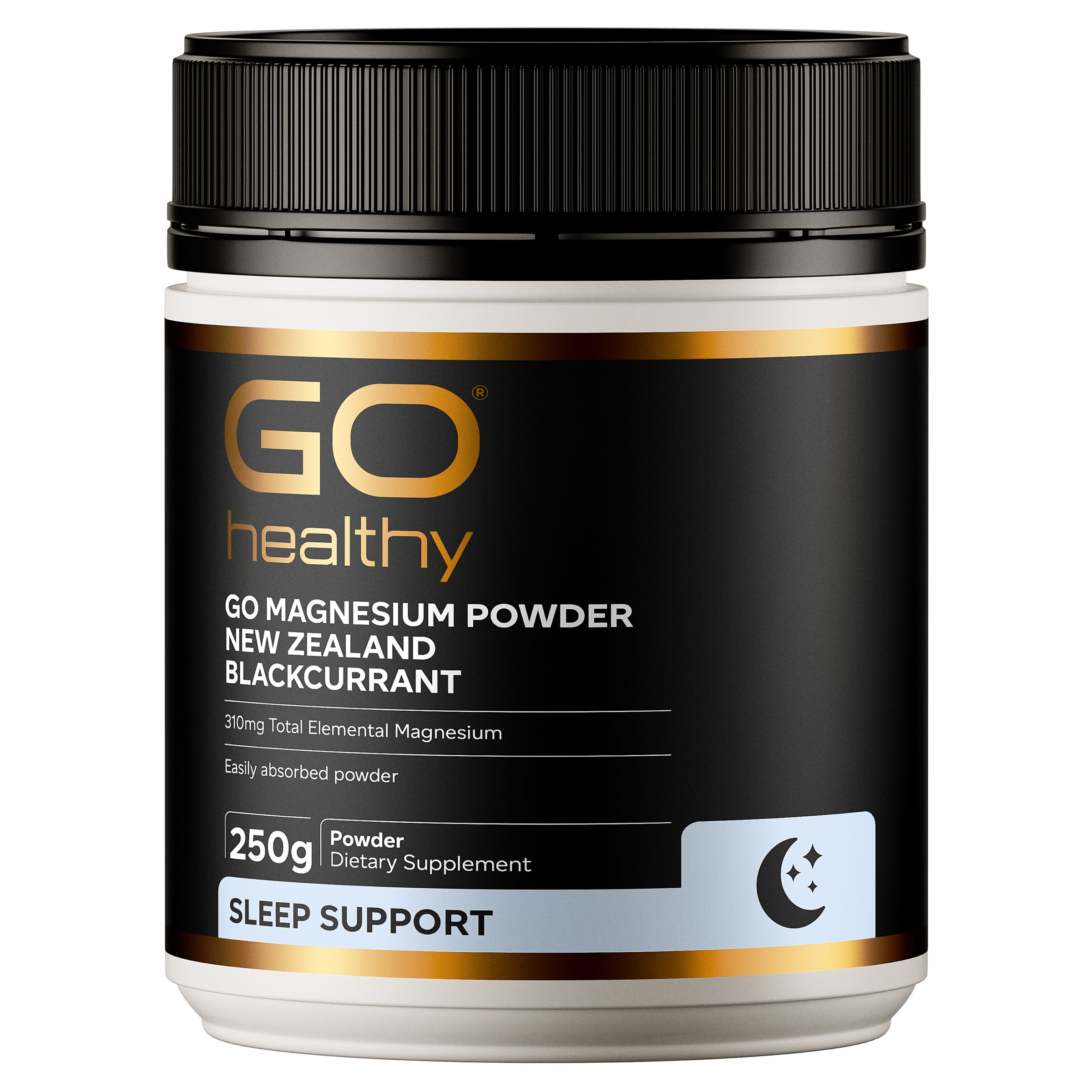 GO MAGNESIUM POWDER NEW ZEALAND BLACKCURRANT contains 310mg total elemental Magnesium in an easily absorbed powder form, supplied in a natural and delicious blackcurrant flavour. Magnesium is an essential mineral that is responsible for over 300 biochemical reactions in the body, but is easily depleted when the body is under stress, through exercising, poor dietary choices, alcohol intake, or just from living a busy lifestyle. Formulated to support nervous system health, helping to ease stress, tension and relax muscles. GO Magnesium Powder New Zealand Blackcurrant also contains a blend of vitamins and minerals to not only further support the absorption and health benefits of Magnesium, but also help to promote energy and provide additional support for the nervous system. Assists in the prevention of Magnesium deficiency when dietary intake is inadequate.