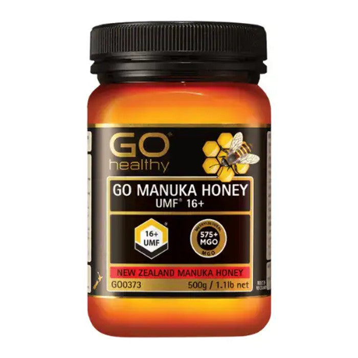 GO MANUKA HONEY UMF 16+ contains 100% pure active Manuka Honey sourced from New Zealand. This premium UMF® honey supports all round health and well-being. GO Healthy guarantees the UMF® rating of all our Manuka Honey by independently testing every batch for NPA, UMF® and MGO levels by accredited laboratories in New Zealand.