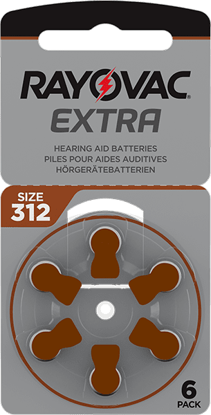 Rayovac size 312, Zinc Air Hearing Aid Battery 1.45V, 6 batteries per card, 10 cards per box.