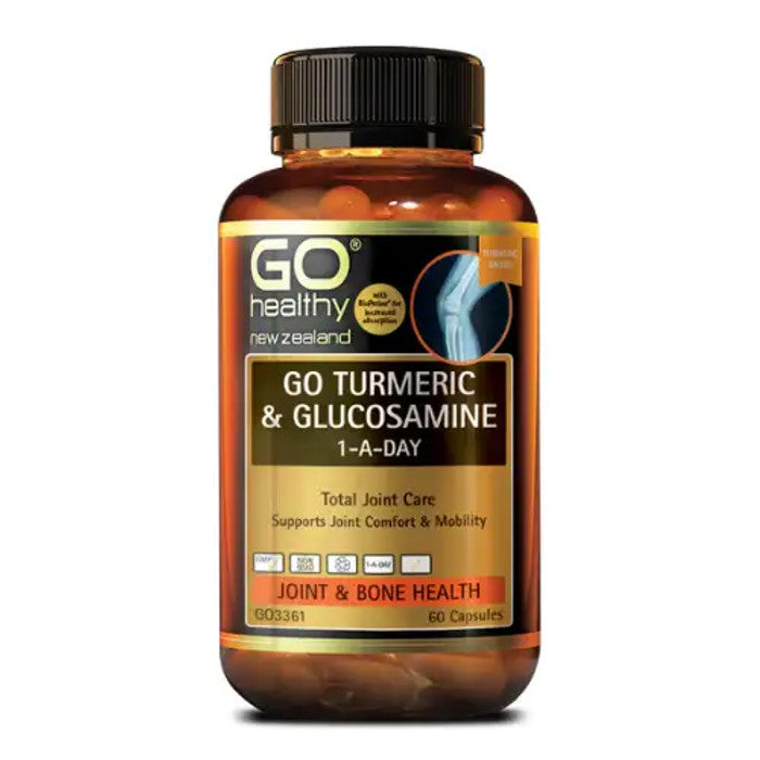 GO Turmeric and Glucosamine a day contains high strength Turmeric, along with a 1,500mg full dose of scientifically proven Glucosamine Sulfate. The incorporation of Ginger helps provide extra support for joint comfort, as well as aids in digestion, with the additions of BioPerine (Black Pepper) offering increased absorption. GO Turmeric & Glucosamine 1-A-Day provides total joint care supplied in an easy 1-A-Day dose.